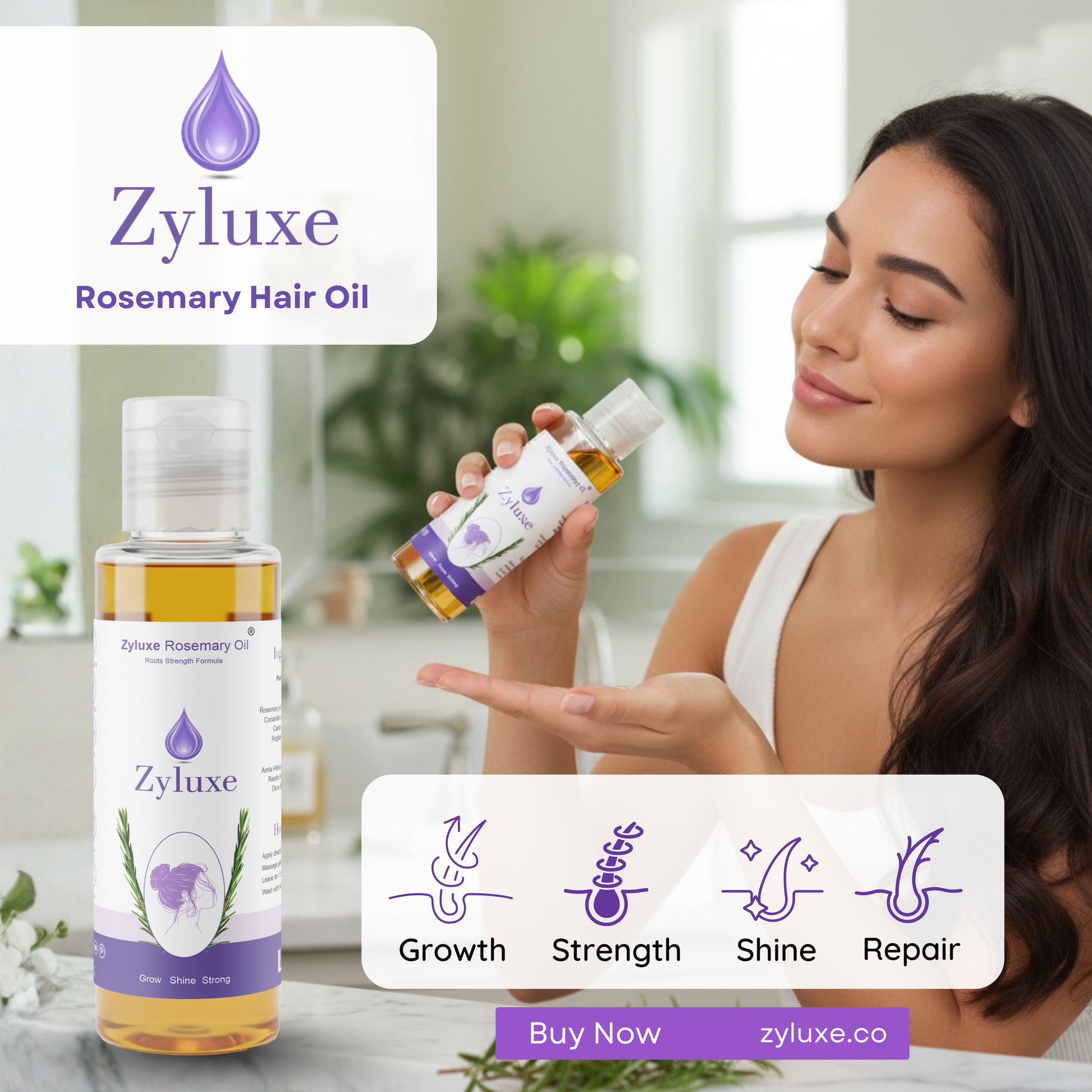 Zyluxe Rosemary Hair Oil – Nourish. Strengthen. Transform.